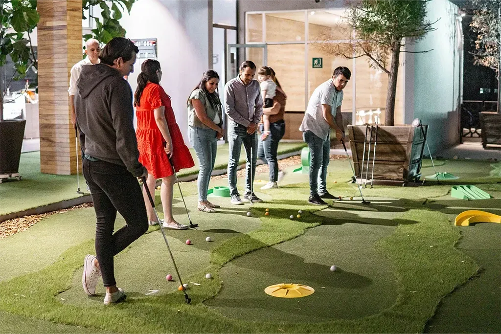 Haz de tu celebración un hole-in-one en THE GOLF ROOF EVENTOSS, el lugar donde la pasión por el golf y los eventos se unen para crear momentos inolvidables.